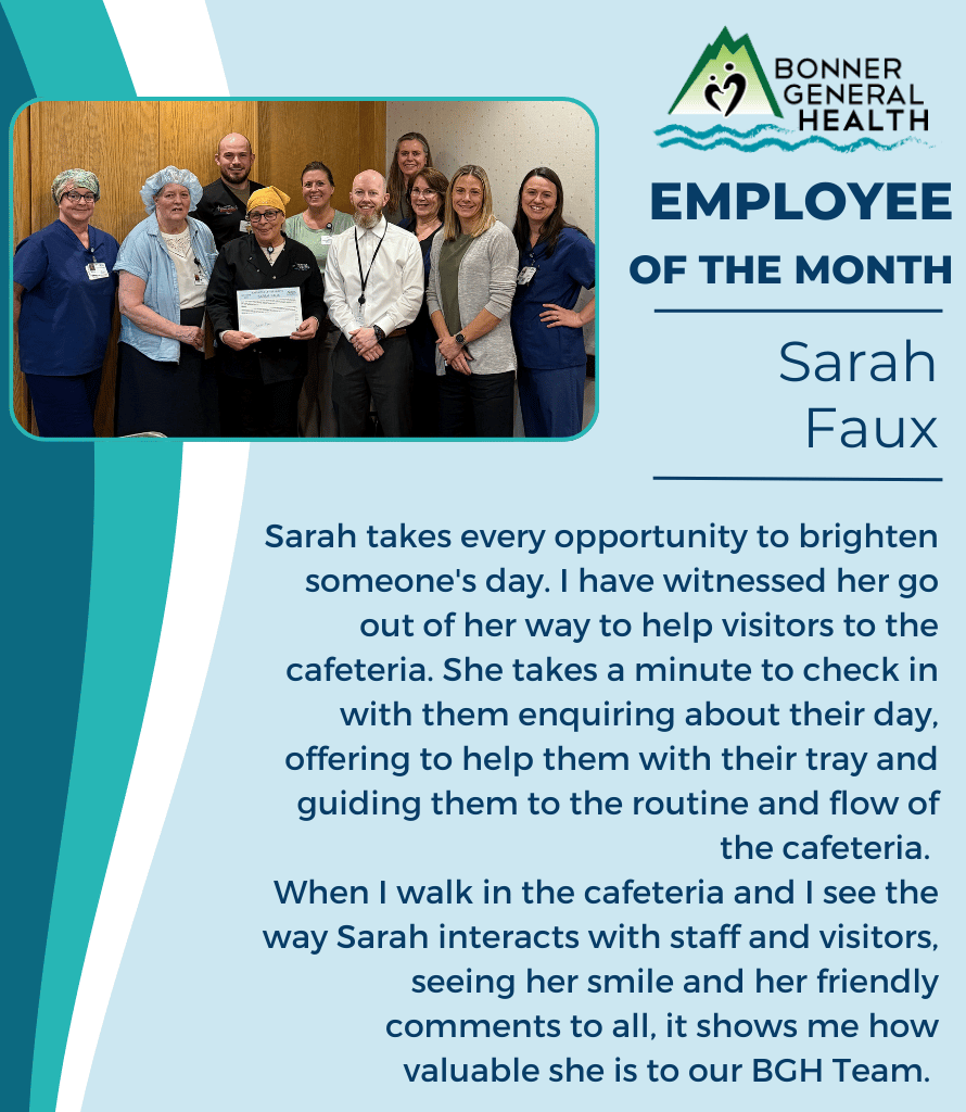 Here at Bonner General Health, we make it a point to recognize outstanding employees that not only do their job extremely well, but make it a point to go above and beyond with many of their patients. These employees make sure to give their patients the best possible experience during their visit.